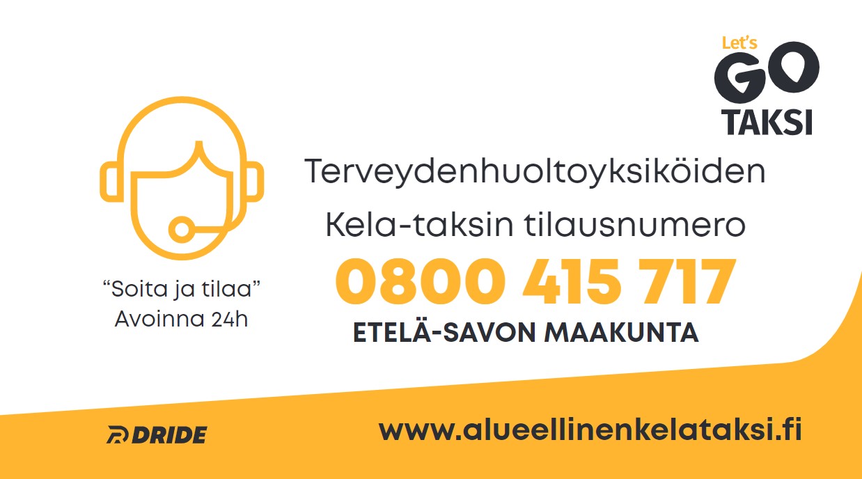 Etelä-Savon maakunnan Kela-kuljetusten matkatilaukset numerosta 0800 415 700