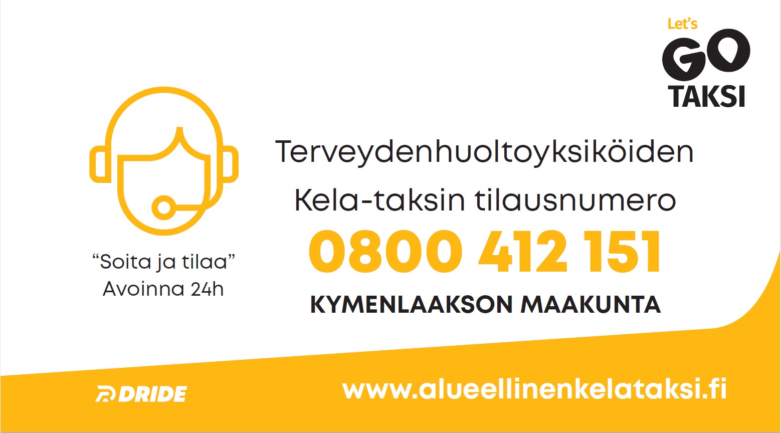 Kymenlaakson maakunnan Kela-kuljetusten matkatilaukset numerosta 0800 415 750